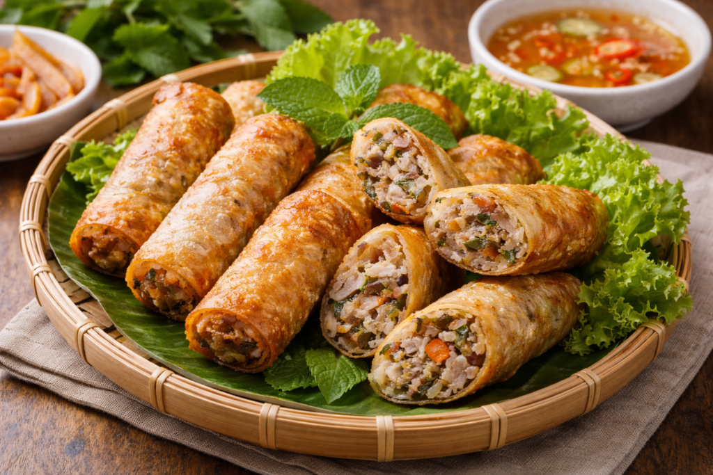 ベトナム全土で食べられていますが、南部では「Chả Giò」、北部では「Nem Rán(ネム・ザン)」と呼ばれることもあります。家庭料理から祝祭料理まで幅広く登場します。