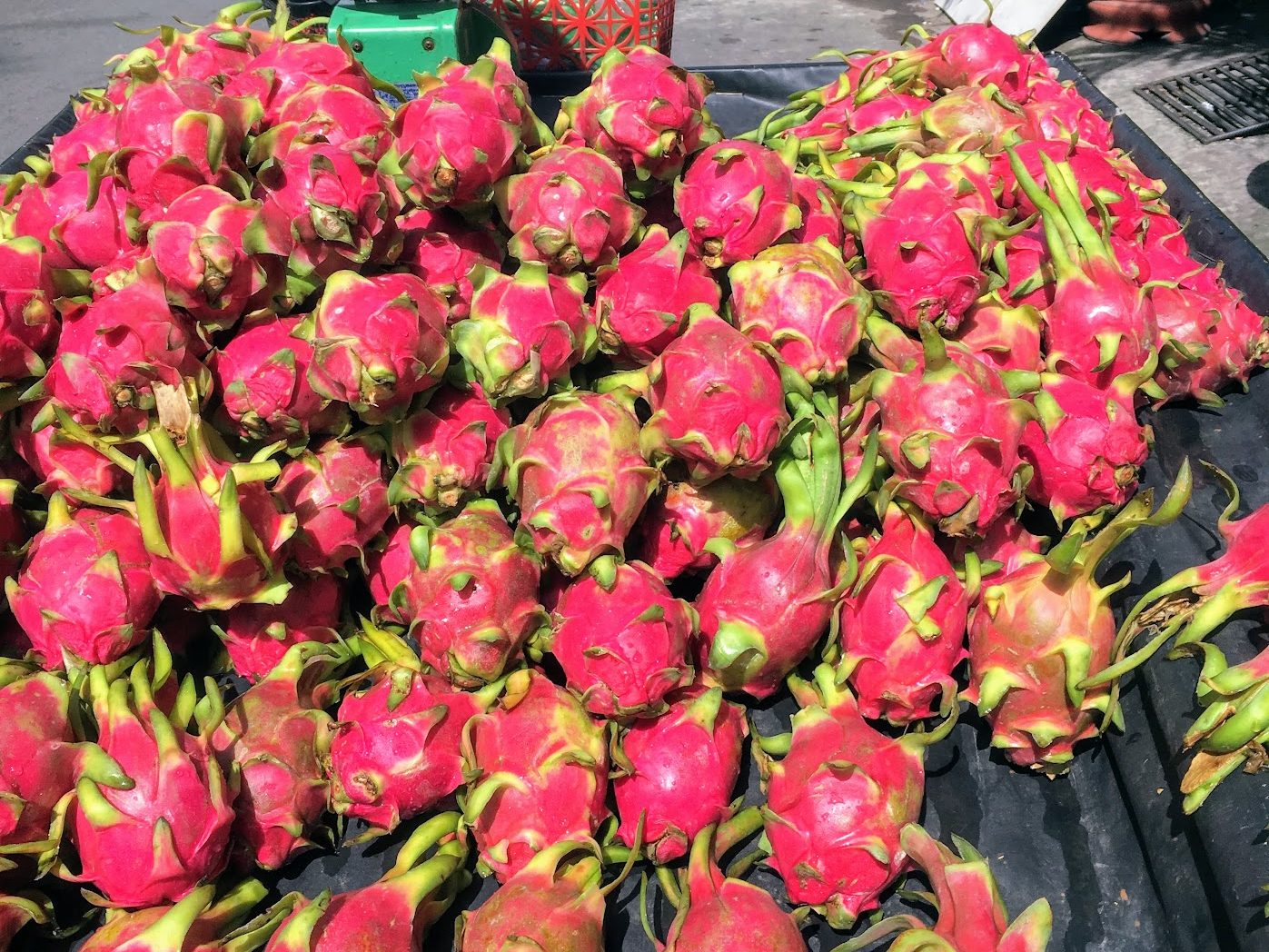 見た目はサボテンのようで、中は白や赤の果肉。味はあっさりしていて、水分が多く食後のデザートに最適です。市場ではよく見かける通年フルーツです。