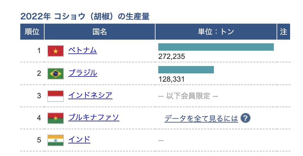 え、胡椒?日本でも買えるじゃん。と思った方も多いかもしれませんが、実はベトナムは胡椒の生産量第一位の胡椒大国。